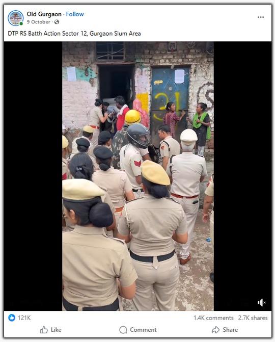 ভাইরাল ভিডিও এবং দাবির সত্যতা জানতে সেটি থেকে একাধিক কিফ্রেম সংগ্রহ করে সেগুলি গুগলে রিভার্স ইমেজ সার্চ করলে ২০২৫ সালের ৯ অক্টোবর ‘Old Gurgaon’ নামক একটি ফেসবুক পেজে এই একই ভিডিও পাওয়া যায়। ভিডিওটি শেয়ার করে ক্যাপশনে লেখা হয়েছে, “গুরুগ্রামের সেক্টর ১২ এলাকার বস্তিতে ডিটিপি আরএস ভাটের অভিযান।”