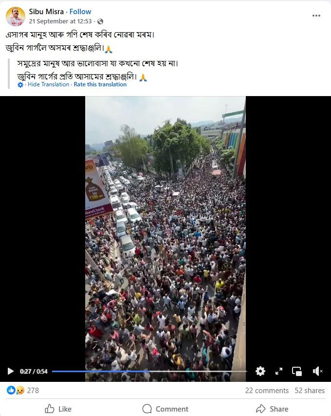 এর থেকে প্রমাণ হয় যে, বিজেপির বিরুদ্ধে সাধারণ মানুষের বিক্ষোভের দৃশ্য দাবি করে সামাজিক যোগাযোগমাধ্যমে ছড়ানো হচ্ছে সঙ্গীত শিল্পী জুবিন গর্গের অন্তিম-যাত্রার ভিডিও।