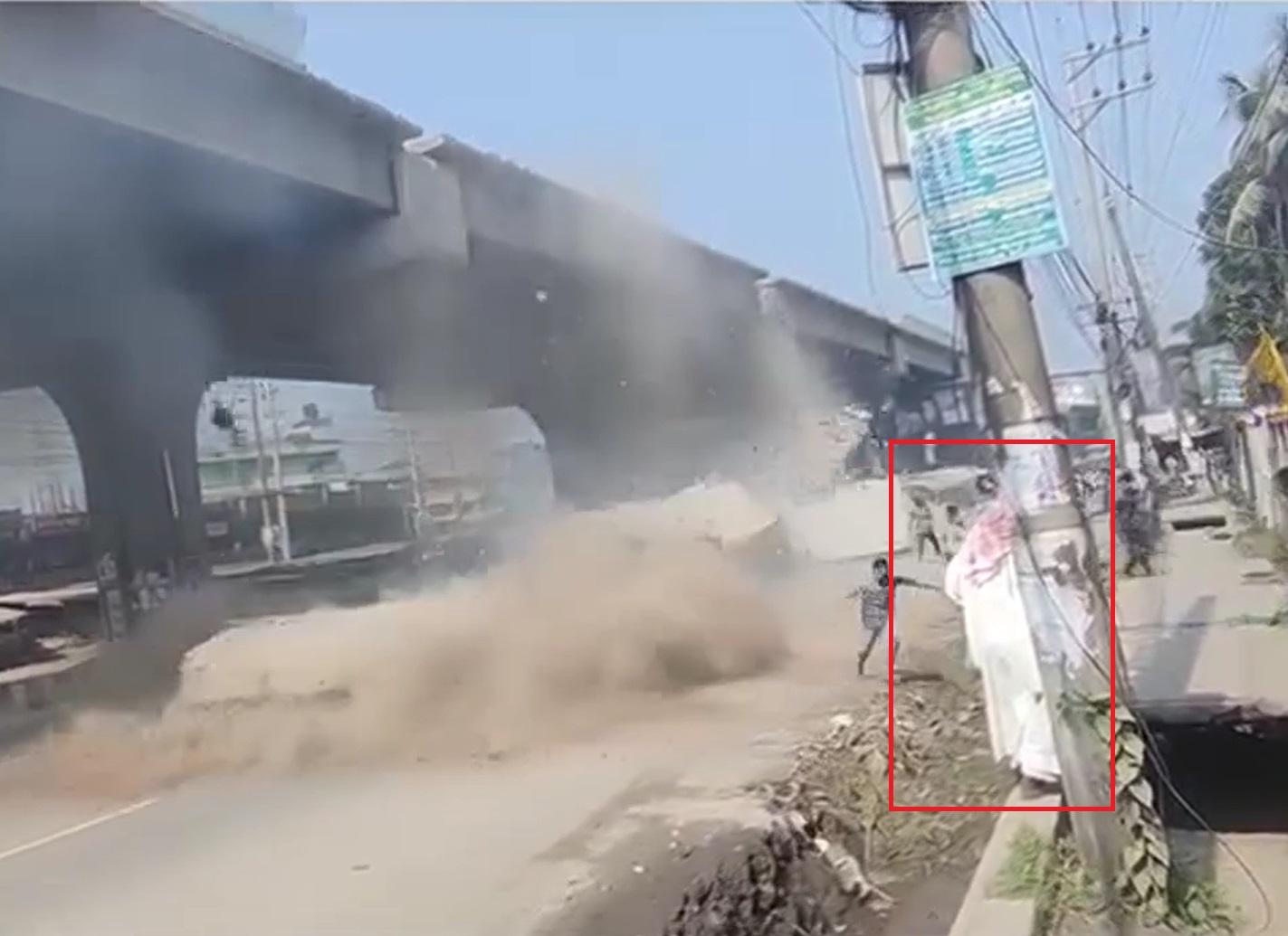 ভিডিওতে দেখা যাচ্ছে, ২১ নভেম্বর সকালের ভূমিকম্পে বাংলাদেশের আশুলিয়া উড়ালপুলের একাংশ কীভাবে ভেঙে পড়ছে।