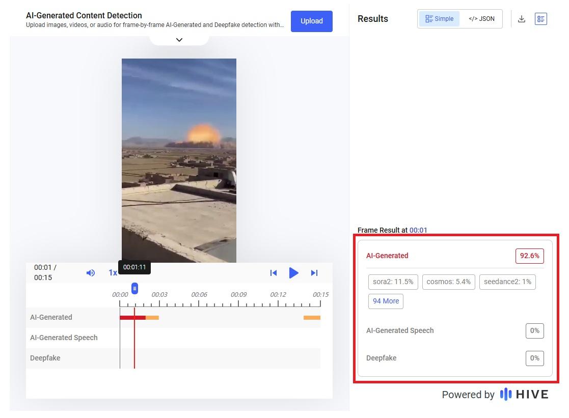 এআই যাচাইকারী টুলের মাধ্যমে পরীক্ষা করা হলে সেখানেও নিশ্চিত করা হয় যে ভিডিওটি ৯২ শতাংশ এআই দ্বারা তৈরি করা হয়েছে।