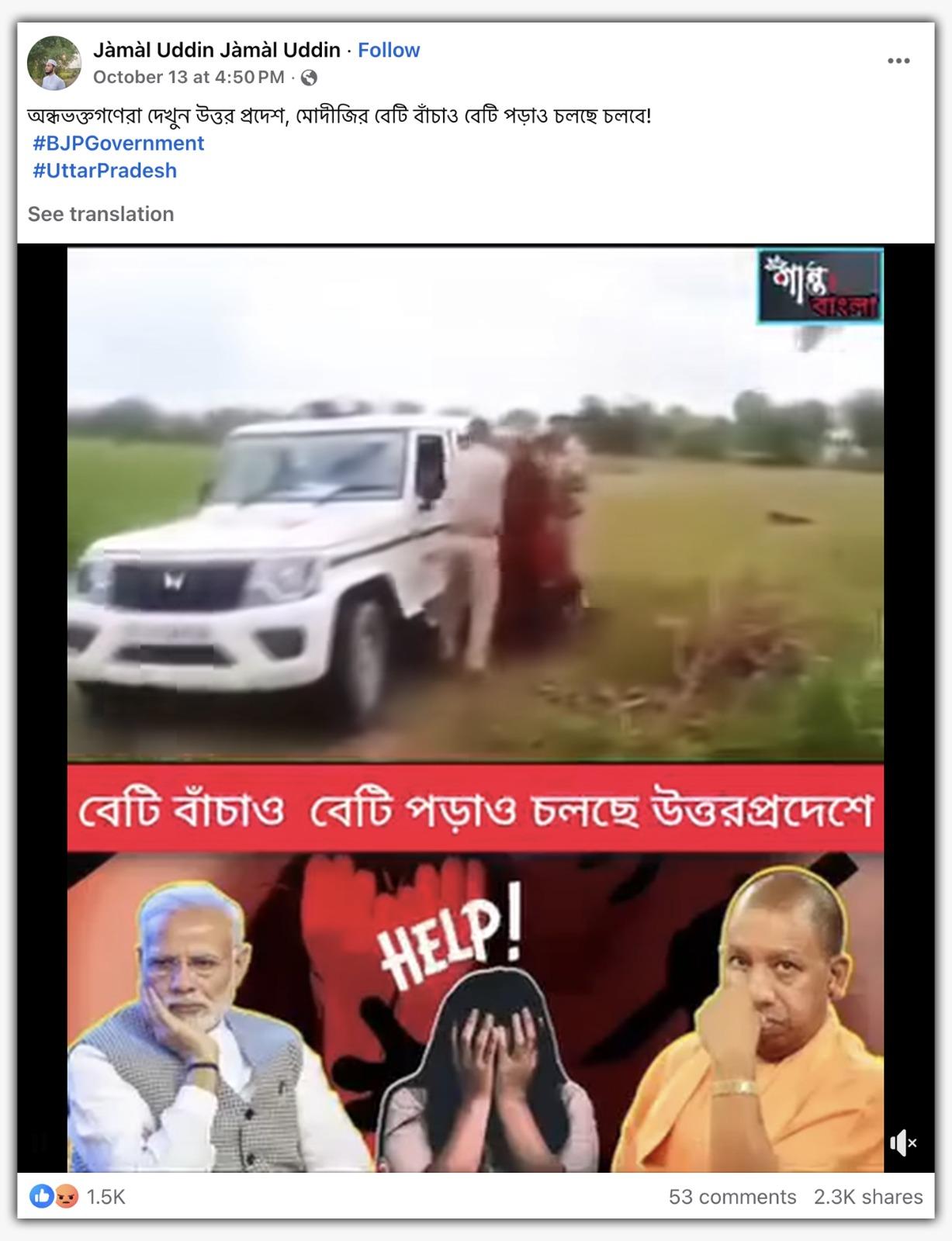 ভিডিওটি পোস্ট করে ক্যাপশনে লেখা হয়েছে, “অন্ধভক্তগণেরা দেখুন উত্তর প্রদেশ, মোদীজির বেটি বাঁচাও বেটি পড়াও চলছে চলবে!”
