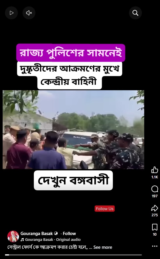 কেউ আবার লিখেছেন, “রাজ্য পুলিশের সামনেই দুষ্কৃতীদের আক্রমণের মুখে কেন্দ্রীয় বাহিনী। দেখুন বঙ্গবাসী।”