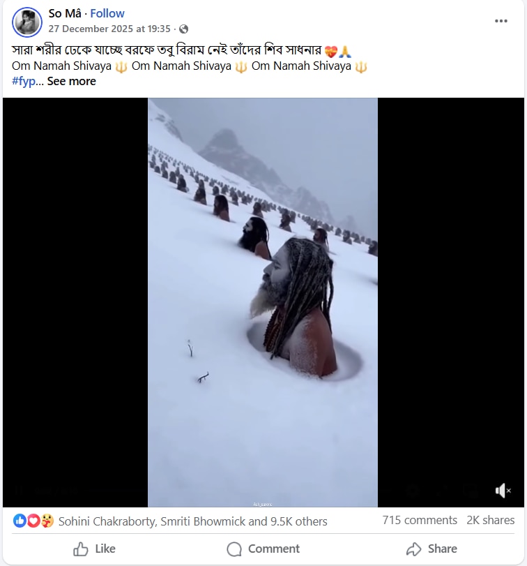 বরফে ঢাকা অবস্থাতেও এই ভিডিওতে সাধুরা শিব সাধনা করছেন এবং মন্ত্র পাঠ করে যাচ্ছেন।