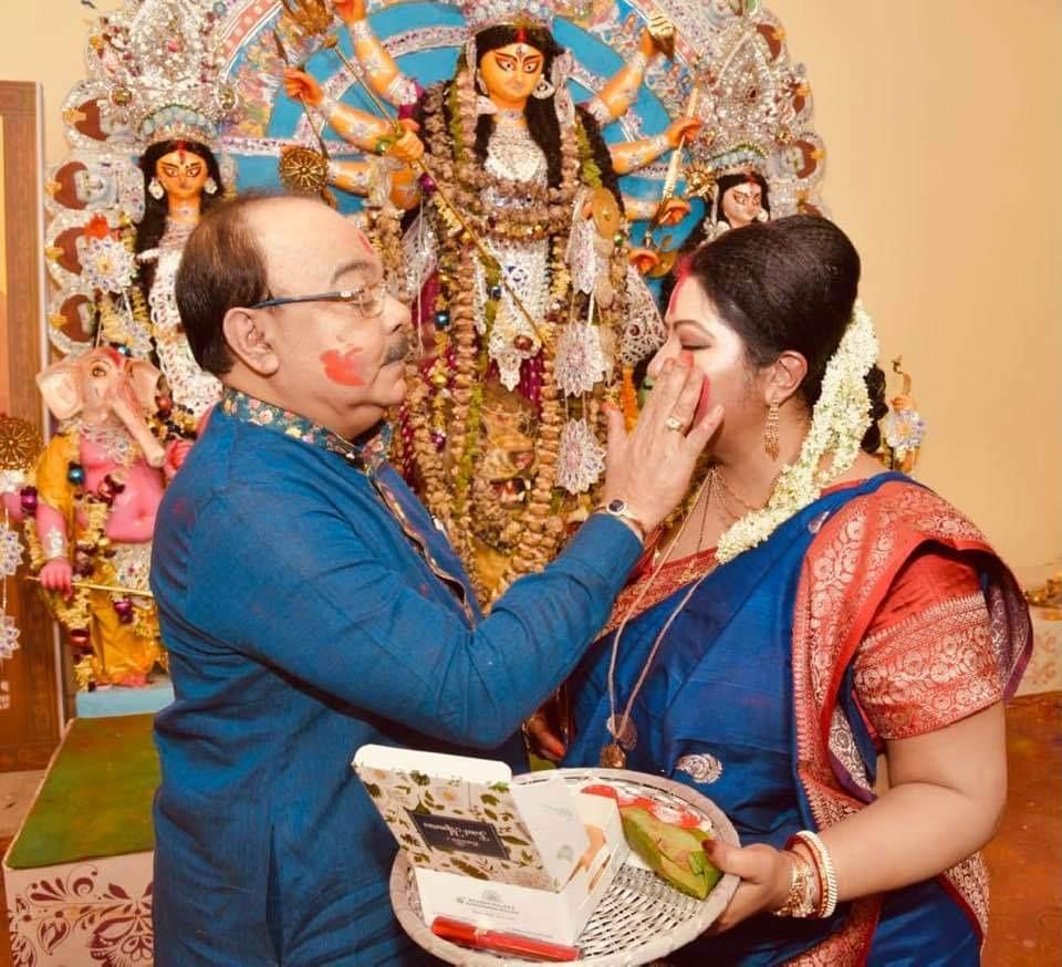 মা দুর্গার সামনে বৈশাখীর সিঁথিতে সিঁদুর পরান শোভন