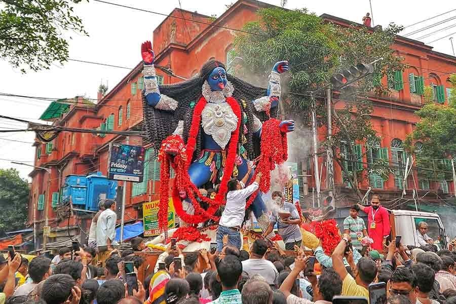 ৫১টি শক্তিপীঠের মধ্যে অন্যতম কালীঘাট মন্দির কালীপুজোর কেন্দ্রবিন্দু। কয়েক শতাব্দী পুরনো এই মন্দিরে দেবী কালিকা রূপে পুজিত হন। হিংস্র, করুণাময় ও সর্বদা রক্ষাকারী। পুজোর রাতে ভক্তদের ভিড়ে মুখর থাকে গোটা এলাকা, গলিগুলো ভরে ওঠে ধূপ, আলো আর শাঁখের শব্দে।