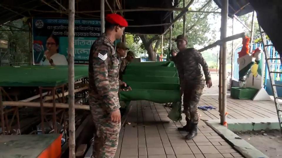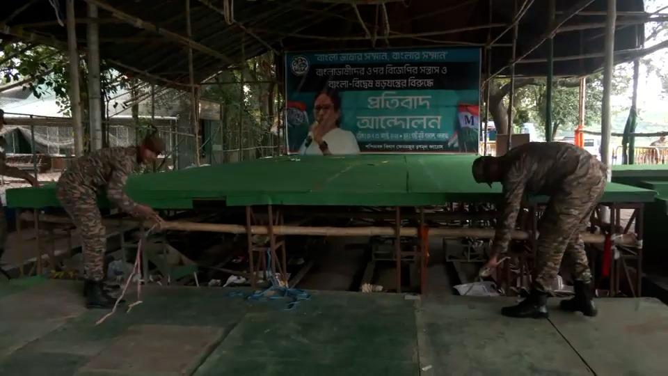 মমতা বলেন, 'সেনার কোনও দোষ নেই, তারা আমাদের বন্ধু। কিন্তু বিজেপি রাজনৈতিক স্বার্থে সেনাকে ব্যবহার করছে। আমাদের যদি বলা হতো, আমরা নিজেরাই মঞ্চ খুলে দিতাম।' তিনি আরও দাবি করেন, তাঁকে দেখেই প্রায় ২০০ সেনাকর্মী ঘটনাস্থল থেকে সরে যান। এ বিষয়ে মমতার কটাক্ষ, 'আমি সেনাকে সম্মান করি। কিন্তু এটা সেনা করেনি, বিজেপির নির্দেশেই করা হয়েছে। সেনাকে রাজনৈতিক উদ্দেশ্যে ব্যবহার করা হচ্ছে।'