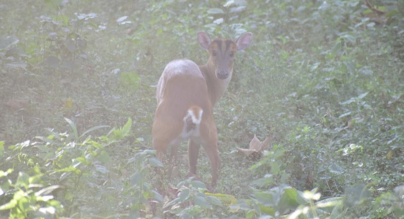 ফেরার পথে কুনকি হাতিদের স্নান করাচ্ছিল মাহুতরা। এদের পিঠে চেপেই জঙ্গল সাফারি হয় একদম ভোরে। দিনে একবার। পথে হলং বাংলোর সামনে দেখা মিল একদল ময়ূর এবং বাইসনের। গাছের ডালে পাখির কর্কষ ডাক চিনিয়ে দিয়েছিল ধনেশকে। আর জঙ্গল থেকে বেরনোর ঠিক আগে বার্কিং ডিয়ার। শোনা যায় বাঘ বা হিংস্র জন্তু এলে এরা কুকুকের মতো ডাক ছেড়ে সকলকে সতর্ক করে। তবে বাঘ বা লেপার্ড দেখার সৌভাগ্য হয়নি। কিন্তু যা দেখেছি তা কোনও দিন ভোলার মতো নয়।