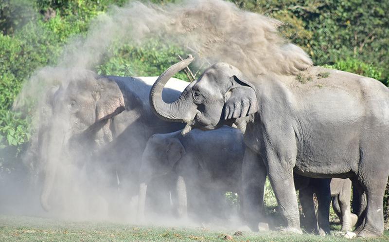 চলছে হাতিদের মাড বাথ। ছবি: রজত কর্মকার'বড় আশা করে এসেছি গো...'