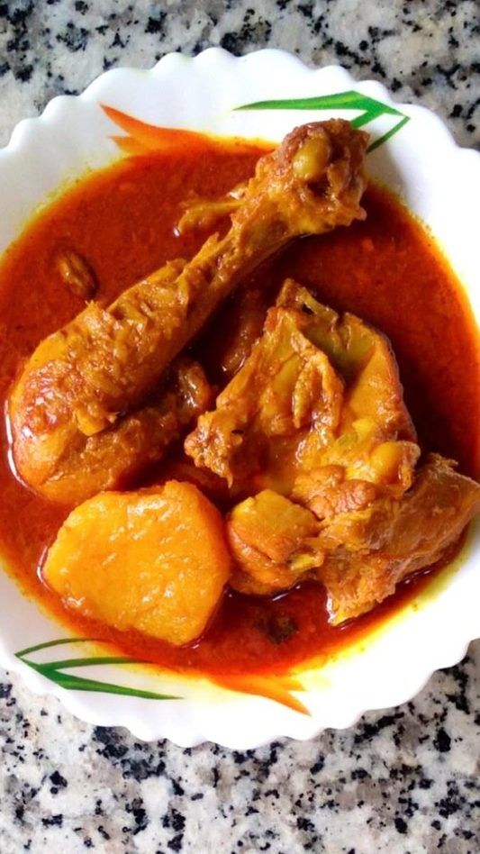দই, হলুদ, লাল লঙ্কা গুঁড়ো এবং নুন দিয়ে চিকেন ম্যারিনেট করুন। অন্তত ১ ঘণ্টা রাখুন। আলু ভেজে তুলে নিন।১ কাপ গুঁড়ো দুধ