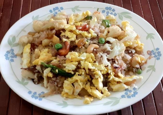 উপকরণ- বাদাম ভেজানো (১০-১৫টি), বেবি কর্ন কুচি, বাটন মাশরুম, ব্রকলি, গাজর, লাল হলুদ সবুজ ক্যাপসিকাম , চিকেন কুচি ও চিংড়ি কুচি ৫০ গ্রাম, ডিম ২টি, টোম্যাটো কেচ-আপ ১ চা চামচ, লঙ্কা বাটা- ১.৫ চা চামচ, রসুন কুচি, আদা ও স্প্রিং অনিয়ন কুচি, পিঁয়াজ কুচি (অর্ধেক পিঁয়াজ), ৩টি লঙ্কা (কুচি করে রাখা), চিড়ে সামান্য সেদ্ধ করে জল ঝরিয়ে রাখা।