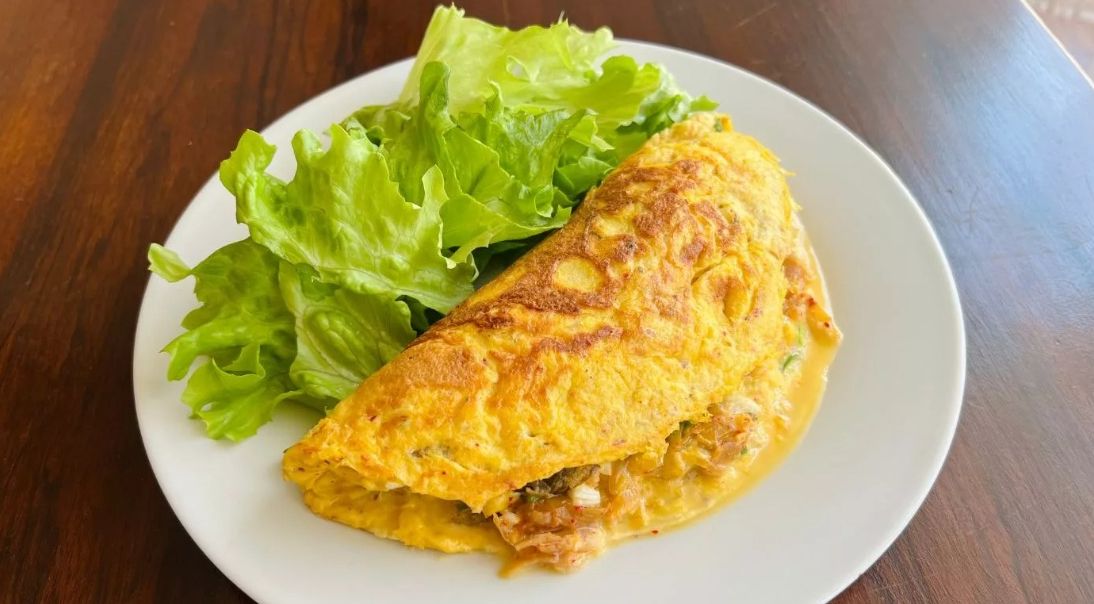 ওমলেট ভাজাও হয় মাখনে। এতে আর কোনও উপকরণ দেওয়া হয় না।