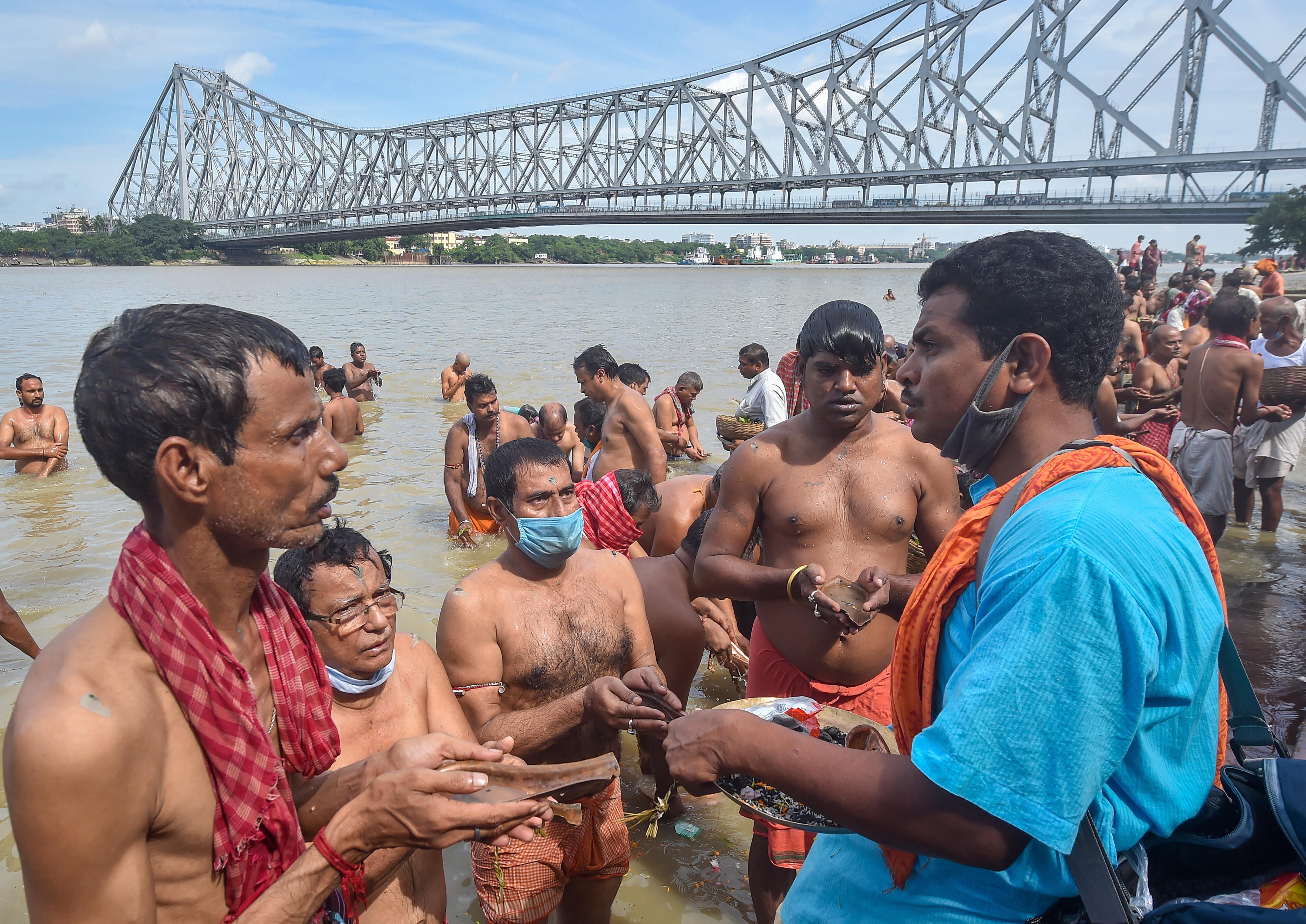 মহালয়ার তর্পণ করতে কলকাতার গঙ্গার ঘাটে ভিড়।