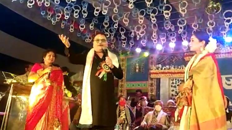 ফের গান গেয়ে মঞ্চ মাতালেন বিধায়ক মদন মিত্র। পূর্ব বর্ধমান জেলার রায়না ২ নং ব্লকের উচালন কৃষি-শিল্প, মৎস্য , প্রাণি ও সাংস্কৃতিক মেলা ২০২২ এর উদ্বোধনে এসেছিলেন কামারহাটির বিধায়ক মদন মিত্র। ছিলেন টিএমসি যুব কংগ্রেসের রাজ্য সভাপতি তথা অভিনেত্রী সায়নী ঘোষও। সেখানেই ফের একবার রঙিন রূপে ধরা দিলেন বিধায়ক মদন মিত্র। গান গেয়ে মন জয় করলেন গ্রামবাসীর। দেখুন ভিডিও।